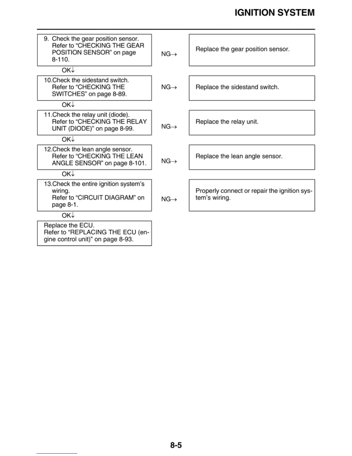 1 o.Check the sidestand switch.