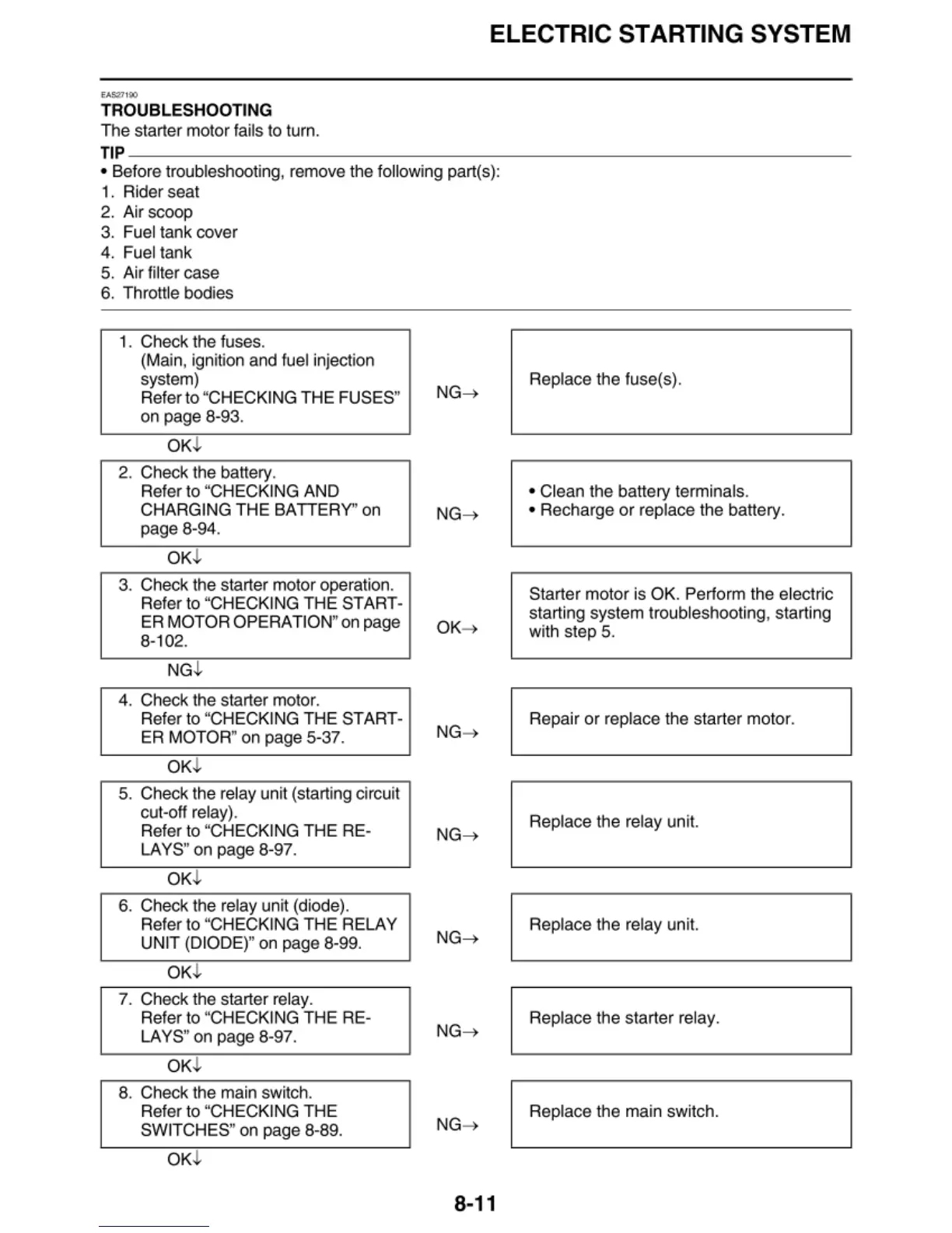 7. Check the starter