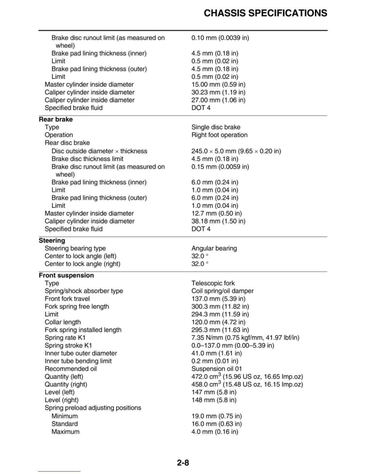 CHASSIS SPECIFICATIONS