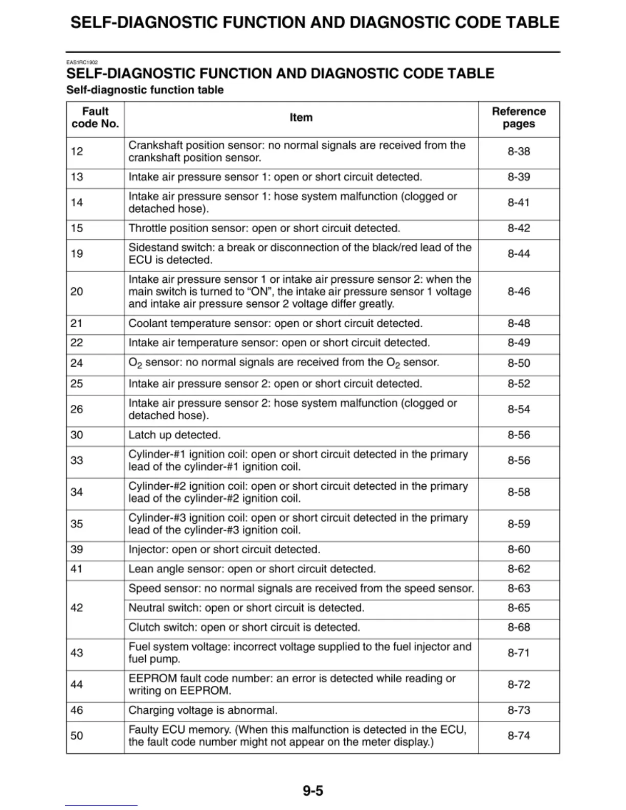 SELF-DIAGNOSTIC FUNCTION AND DIAGNOSTIC CODE TABLE