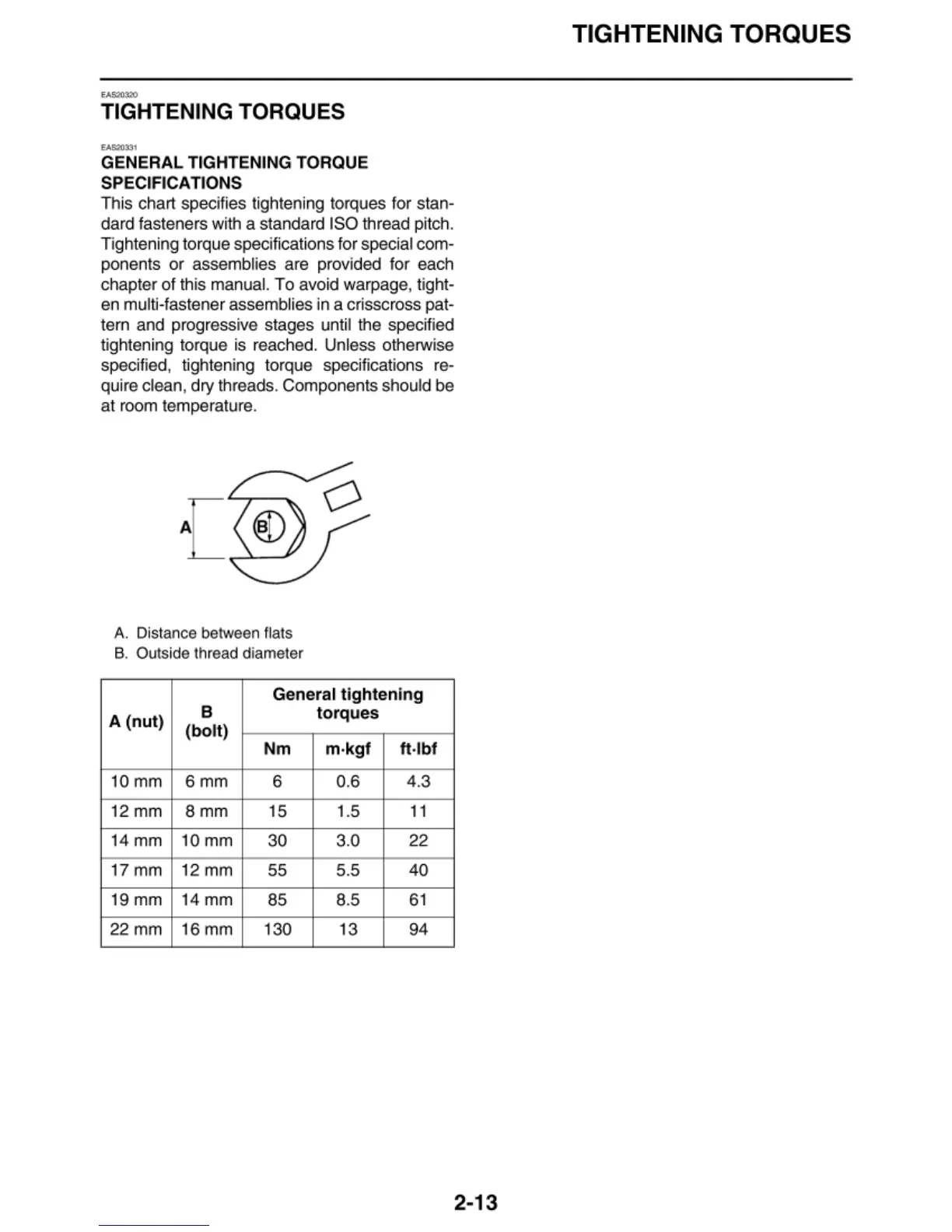 GENERAL TIGHTENING TORQUE