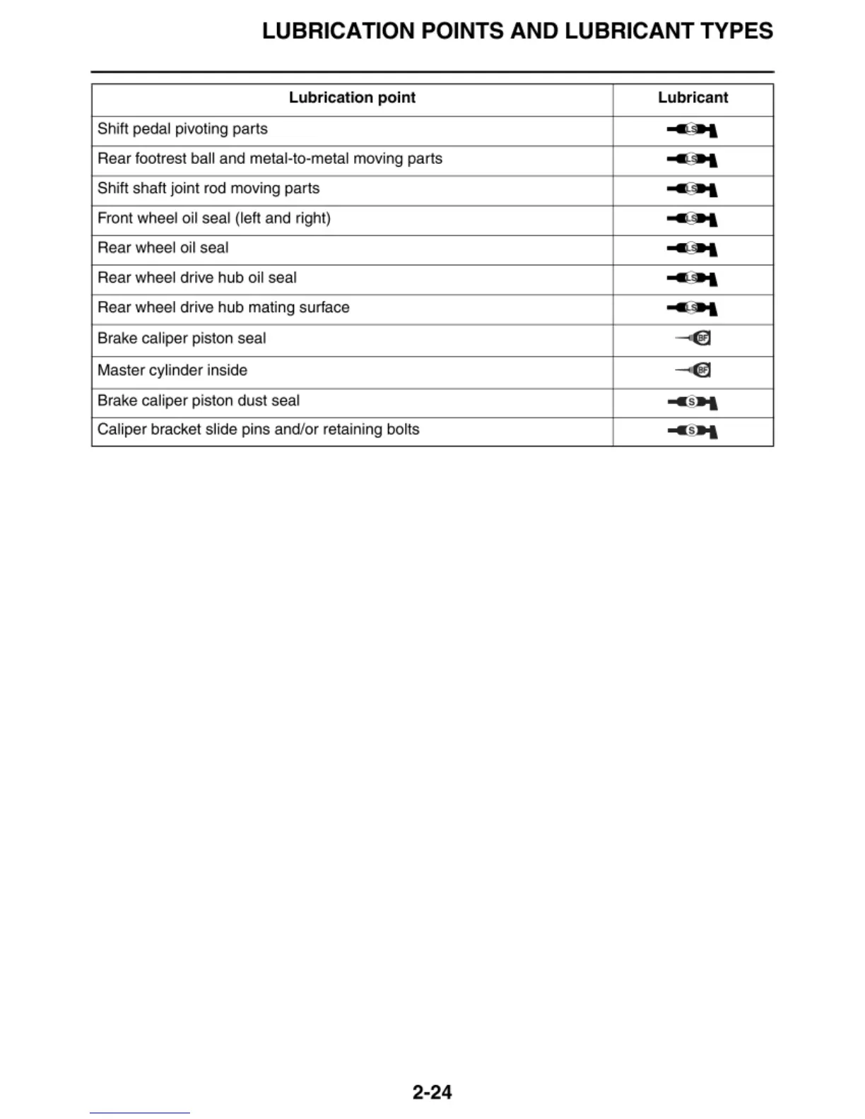 LUBRICATION POINTS AND LUBRICANT TYPES