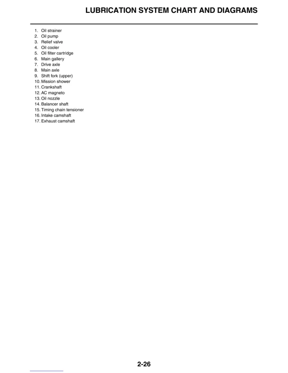 LUBRICATION SYSTEM CHART AND DIAGRAMS
