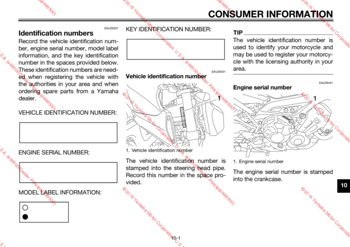 Yamaha FZ09F - CONSUMER INFORMATION; Identification numbers
