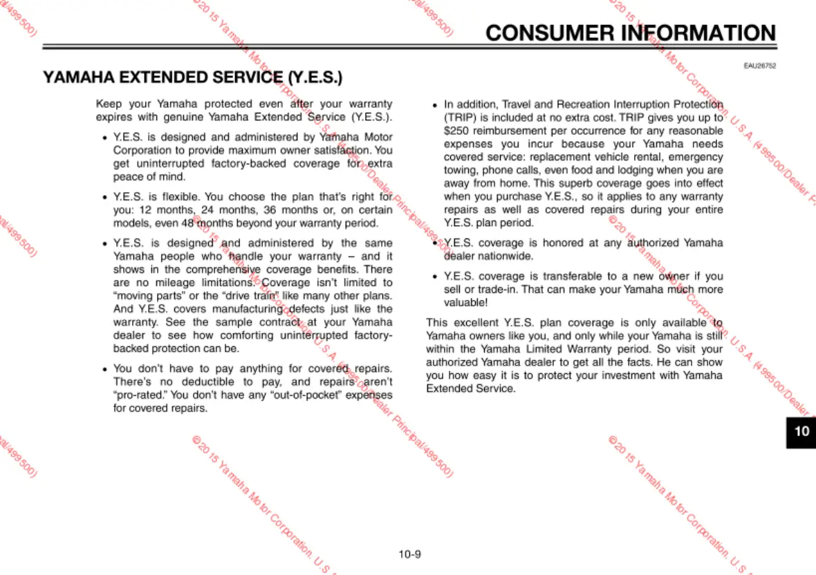 Yamaha FZ09F - YAMAHA EXTENDED SERVICE (Y.E.S.)