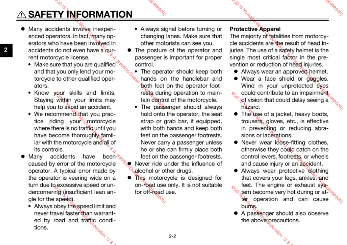 Yamaha FZ09F - Hazard Awareness and Protection
