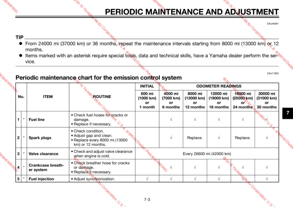 Yamaha FZ09F - Periodic maintenance chart for the emission control system