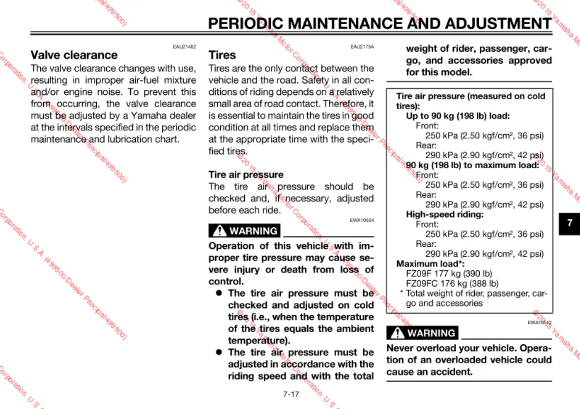 Yamaha FZ09F - Valve clearance; Tires