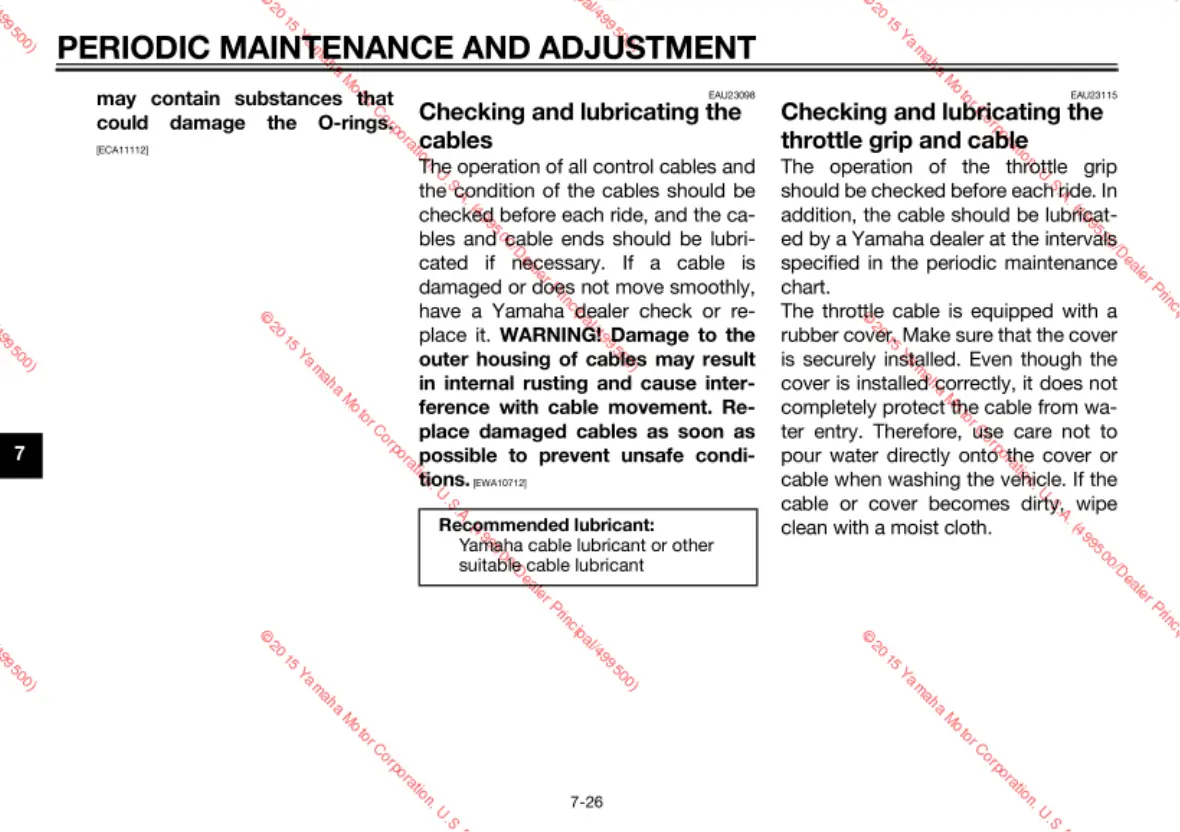 Yamaha FZ09F - Checking and lubricating the cables; Checking and lubricating the throttle grip and cable