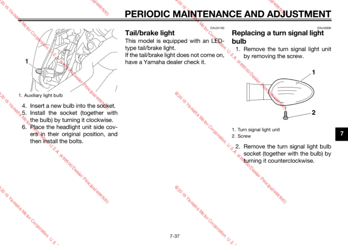 Yamaha FZ09F - Tail;brake light; Replacing a turn signal light bulb