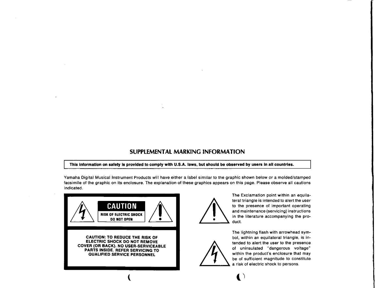 Yamaha G10 - Supplemental Marking Information; Safety Symbols and Cautions
