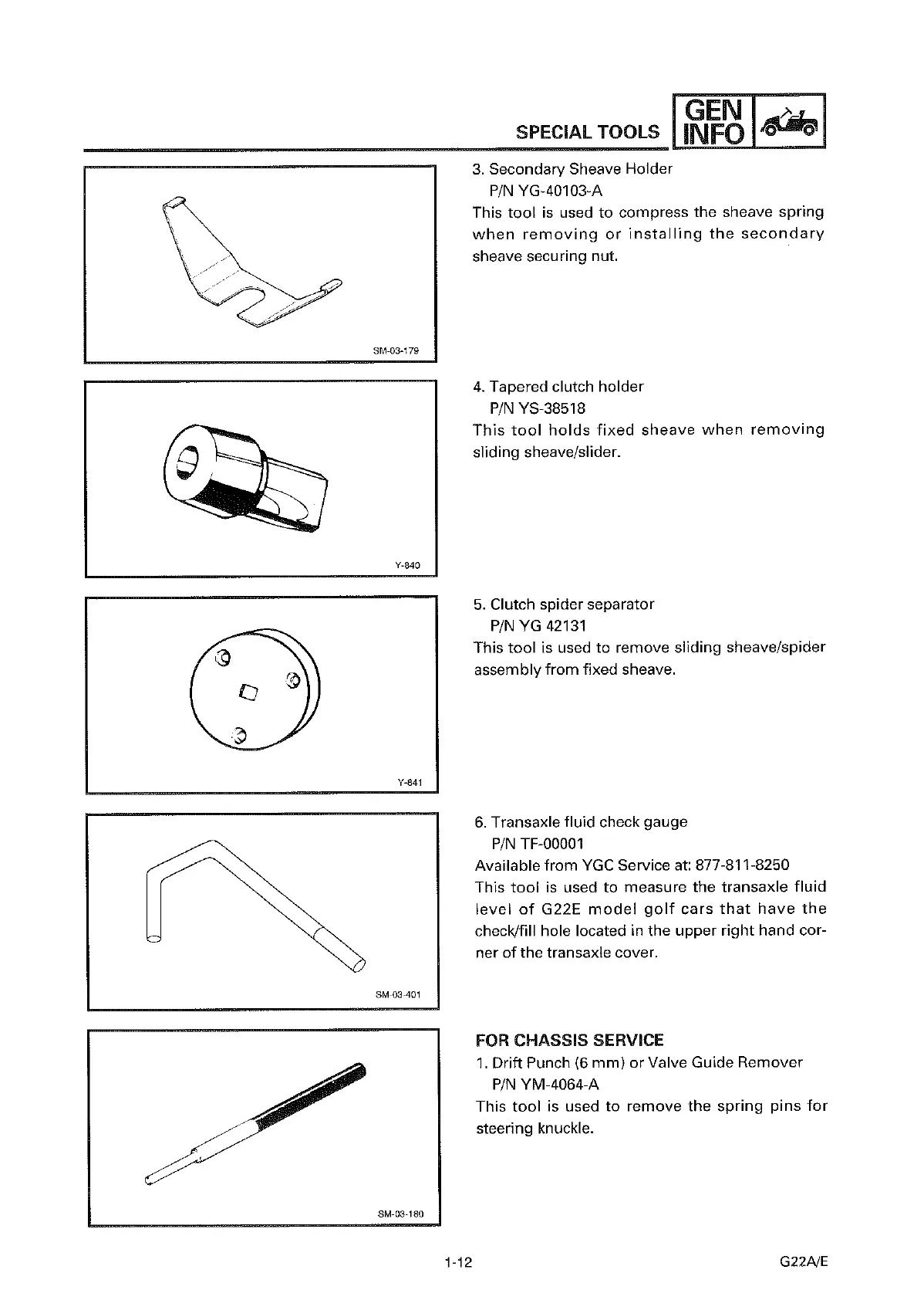 Yamaha G22 A/E - Special Tools for Chassis Service