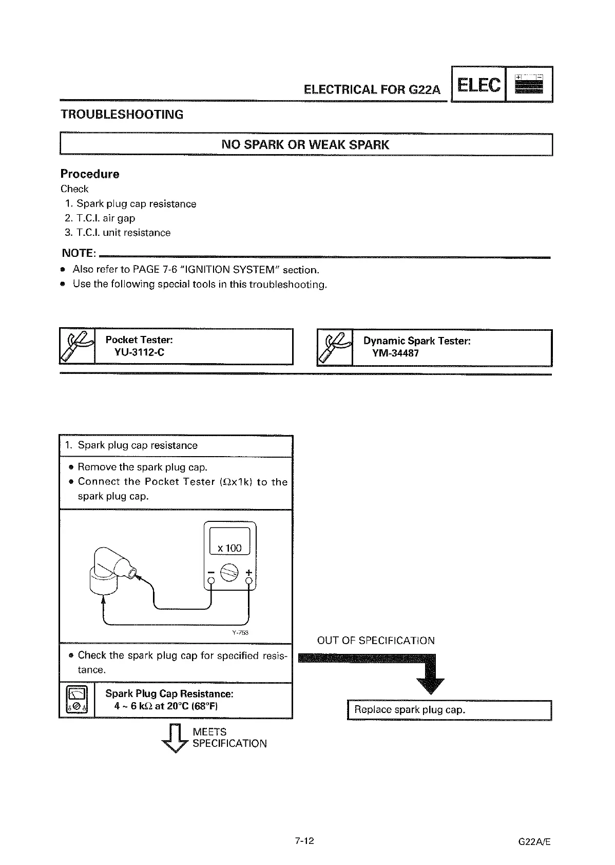 Yamaha G22 A/E - No Spark or Wear Spark