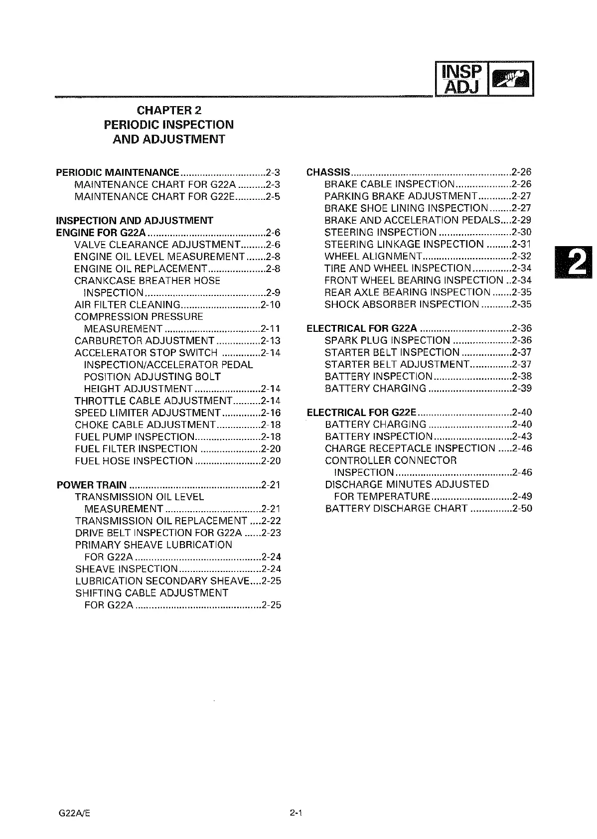 Yamaha G22 A/E - Periodic Inspection and Adjustment