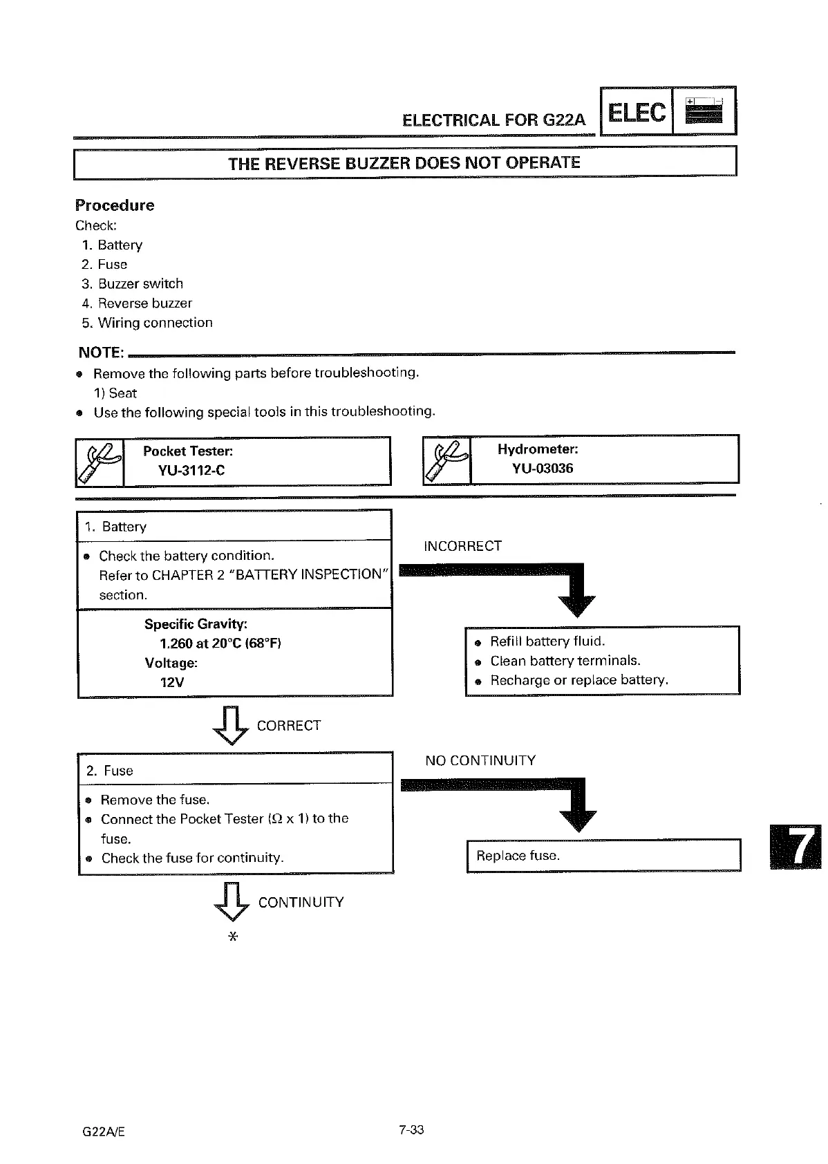 Yamaha G22 A/E - The Reverse Buzzer Does Not Operate