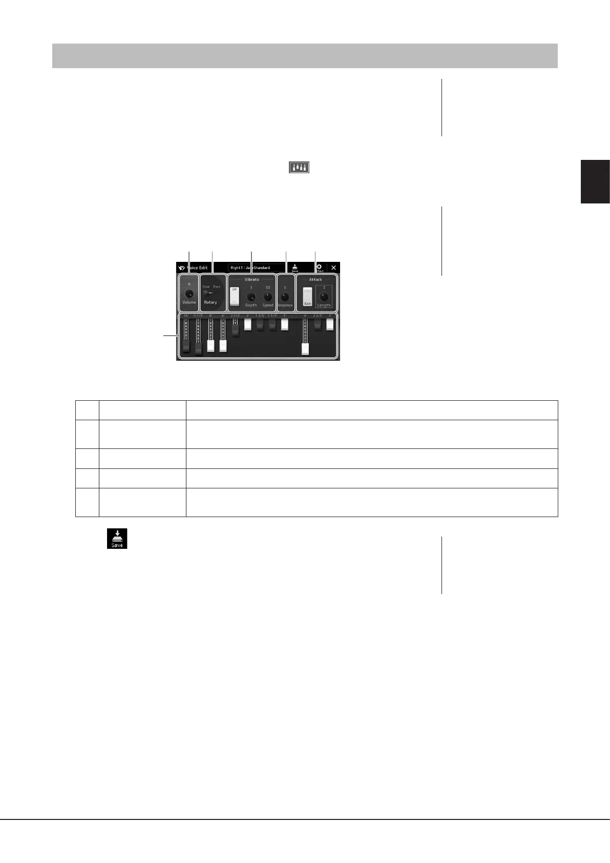 Turns the vibrato on or o, and allows you to adjust the vibrato depth and vibrato speed.