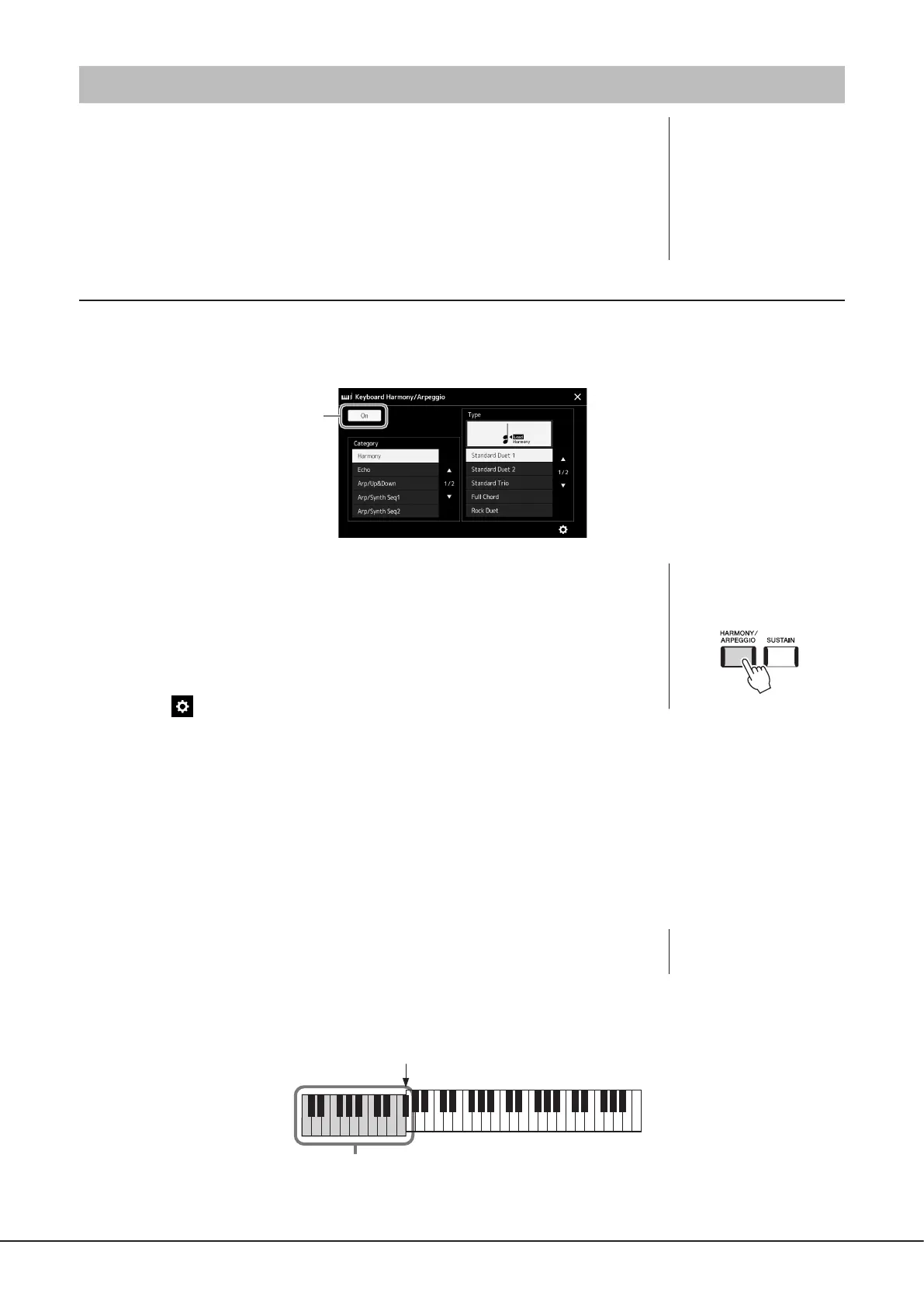 2 Set the Keyboard Harmony/Arpeggio function to “On.”