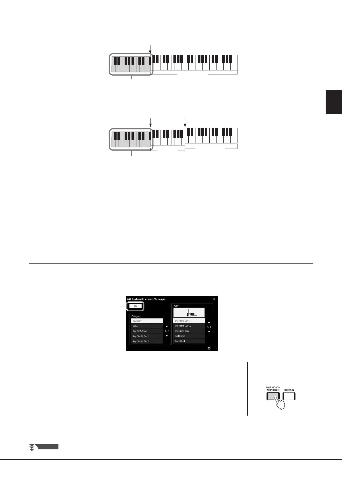 2 Set the Keyboard Harmony/Arpeggio function to “On.”