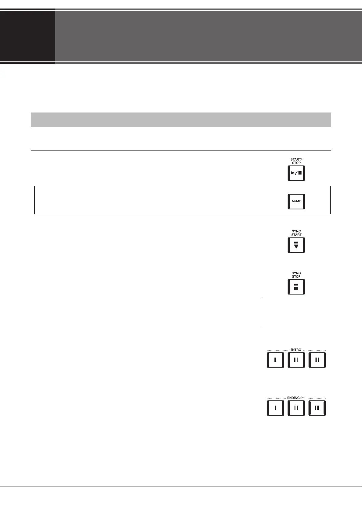 chord section of the keyboard. Make sure that the [ACMP] button is on, press the [SYNC STOP]