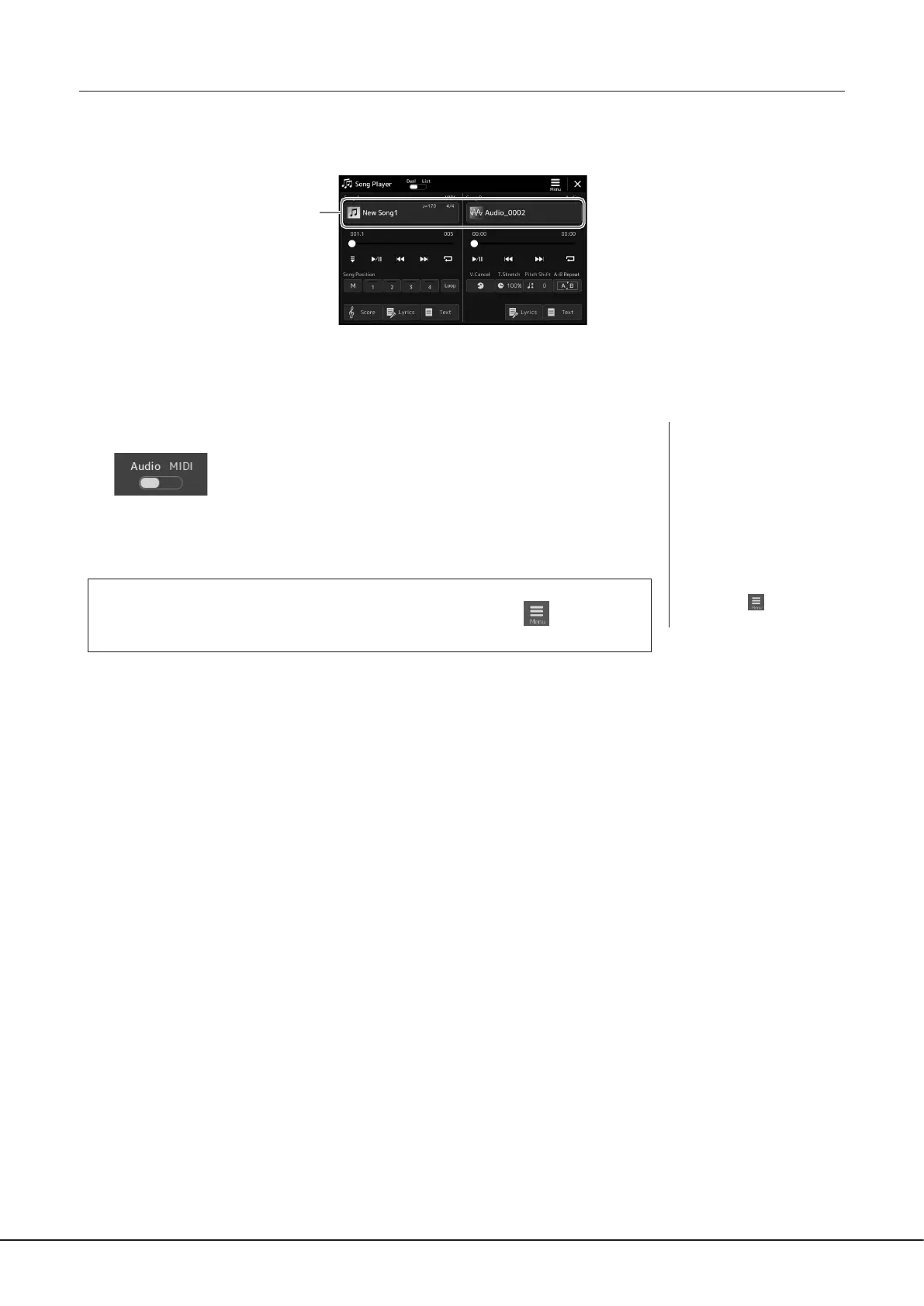 When an Audio Song is selected on the Song Selection display, touching (Menu) then