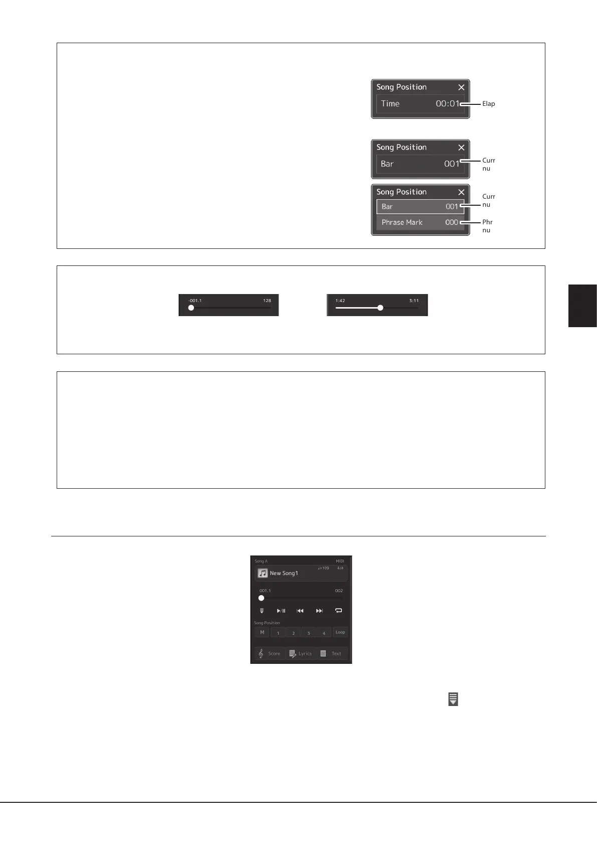 The Phrase Mark number appears only when a MIDI Song containing Phrase