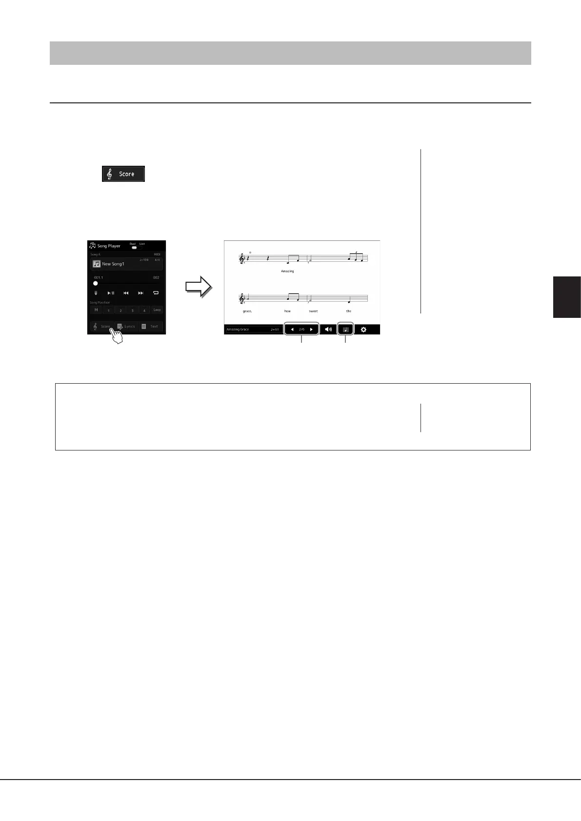 You can view the music notation (score) of the selected MIDI Song. We suggest that you read through the music notation before