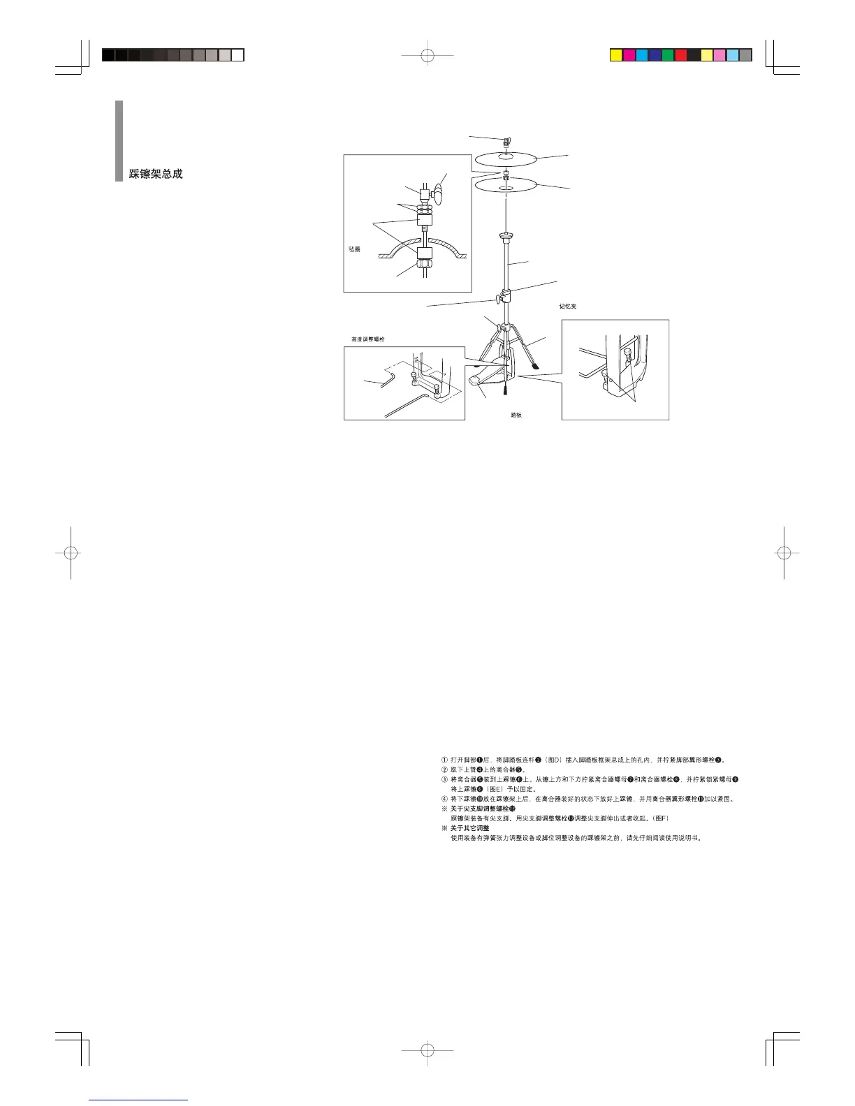 r Posez la cymbale charleston inférieurel !0 sur le pied de charleston, puis installez l’ensemble embrayage