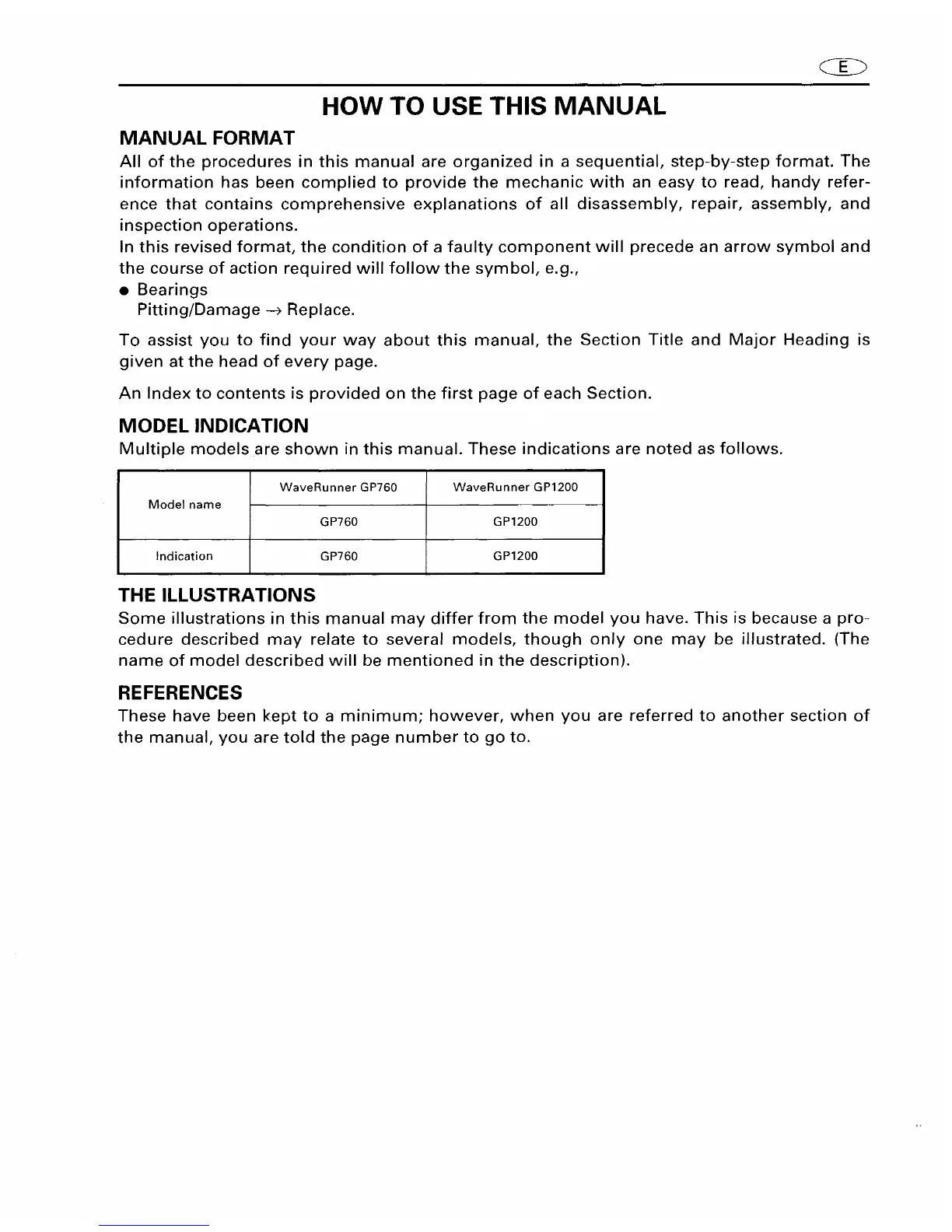 Yamaha GP1200 - How to Use This Manual; Model Indication; The Illustrations; References