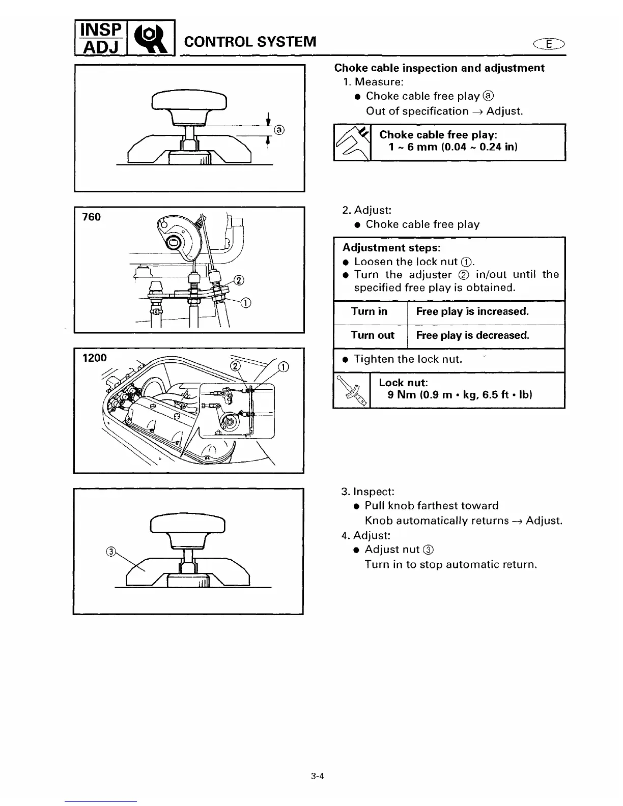 Yamaha GP760 - Choke Cable Inspection and Adjustment; Choke Cable Free Play