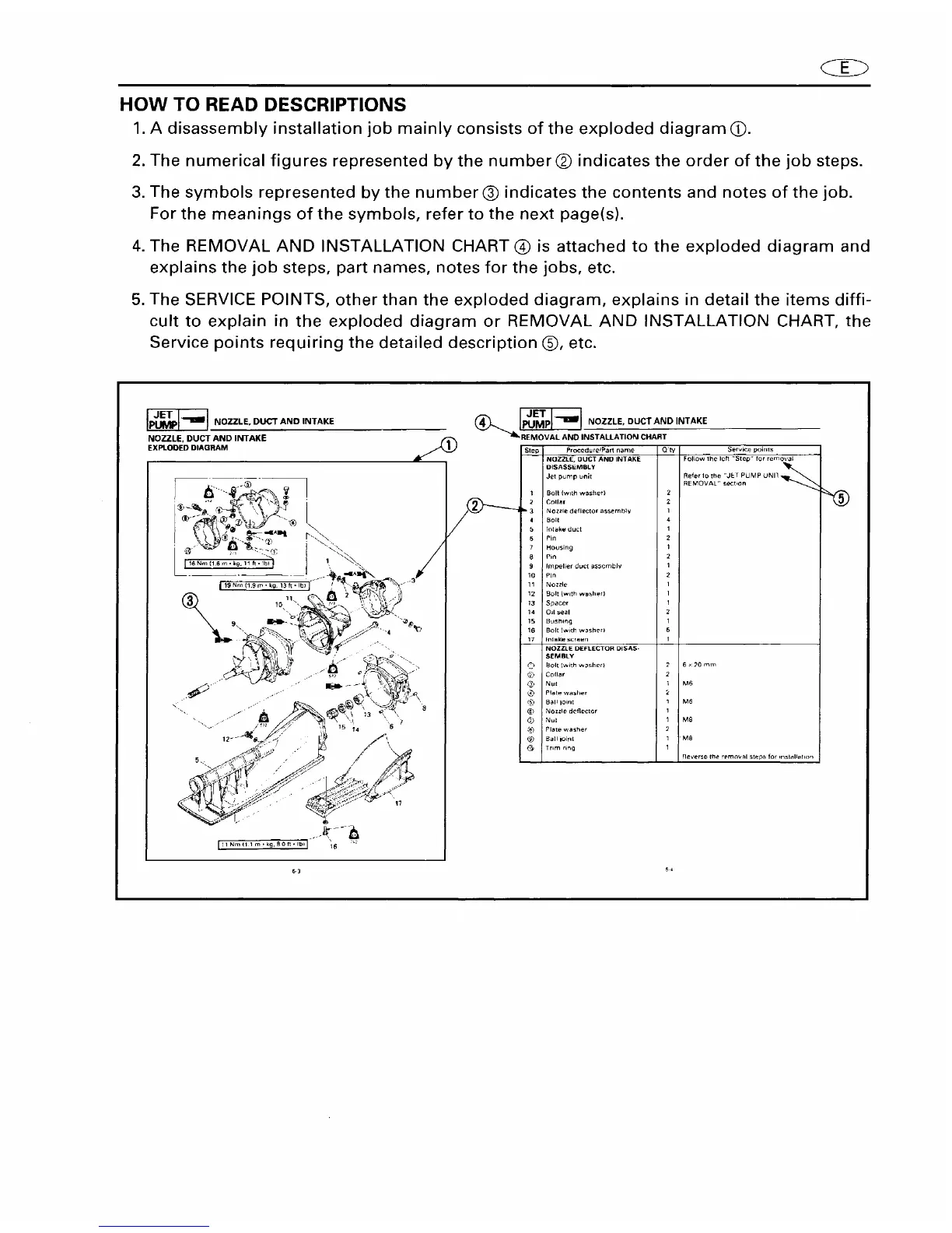 Yamaha GP760 - HOW TO READ DESCRIPTIONS; Exploded Diagrams and Charts; Service Points