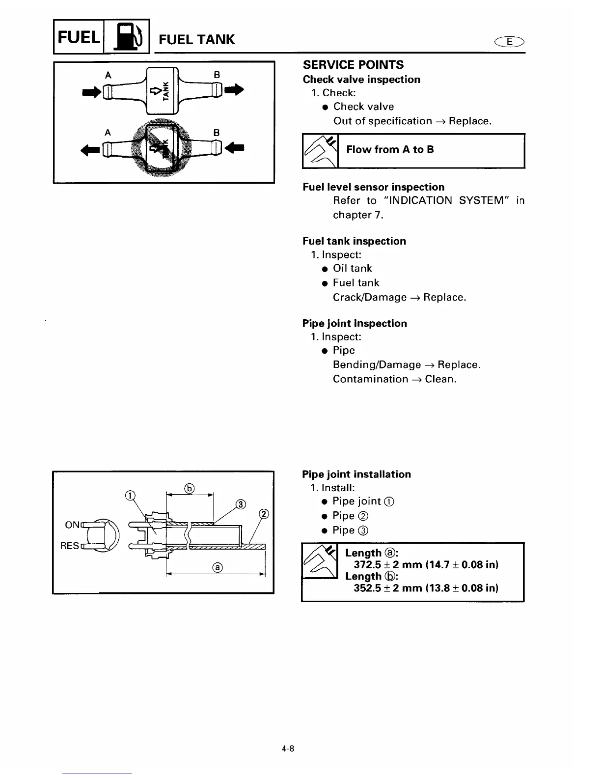Yamaha GP760 - Fuel Tank;Level Sensor Inspection; Pipe Joint Inspection;Installation