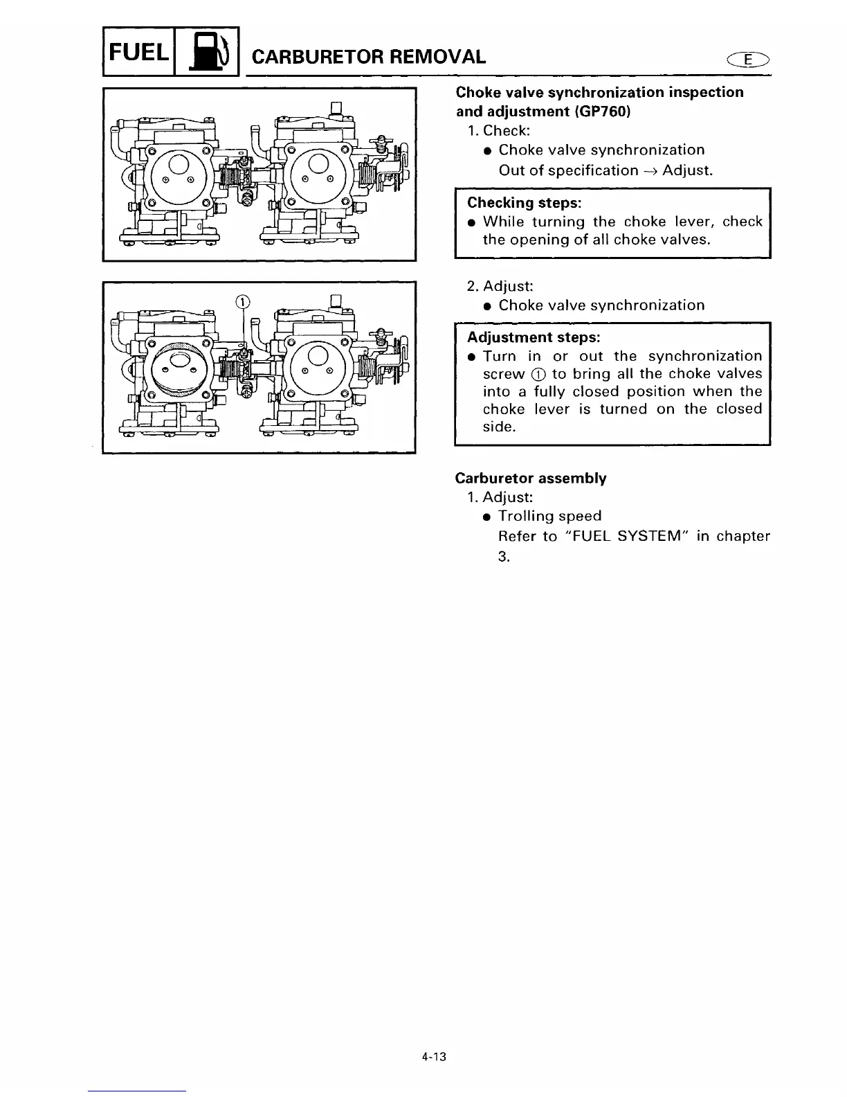 Yamaha GP760 - Choke Valve Synchronization Inspection and Adjustment (GP760); Carburetor Assembly