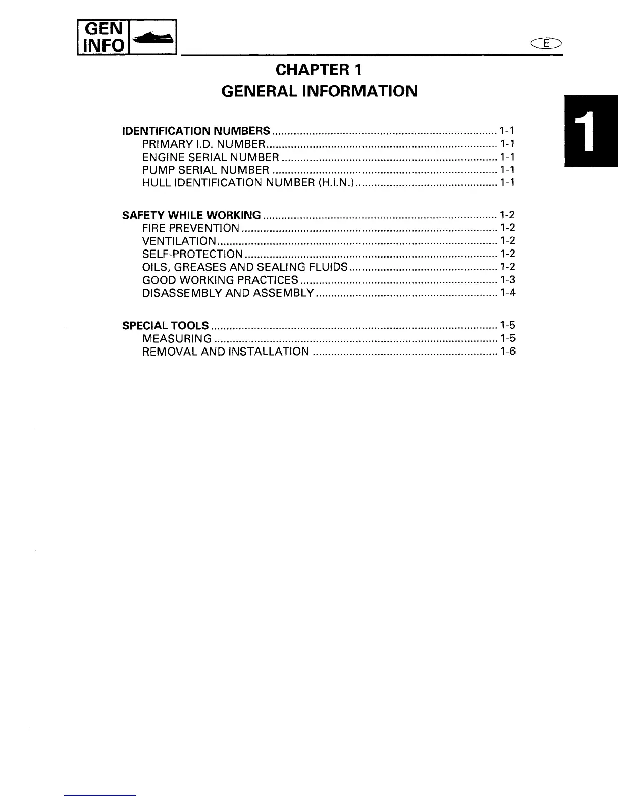 Yamaha GP760 - CHAPTER 1 GENERAL INFORMATION; Identification Numbers; Safety While Working