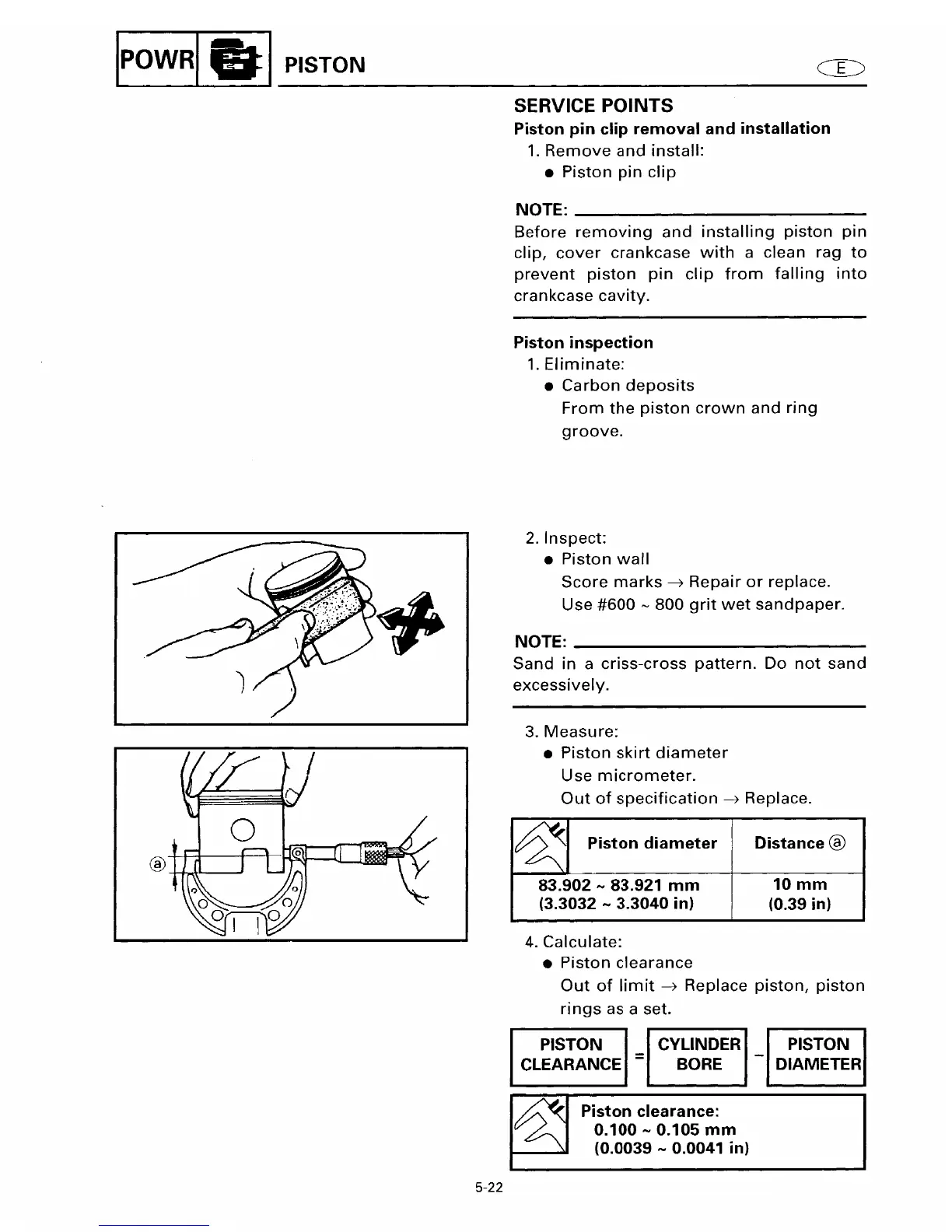 Yamaha GP760 - Piston Pin Clip Removal and Installation; Piston Inspection;Clearance