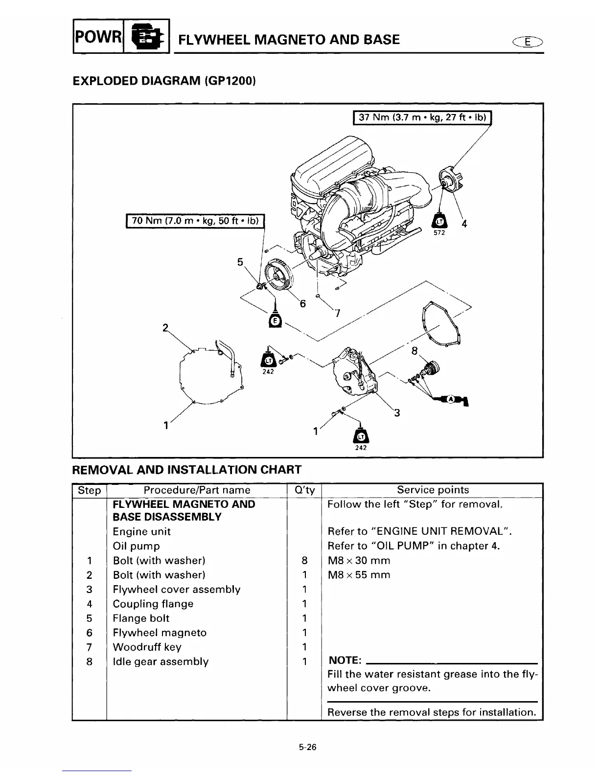 Yamaha GP760 - Flywheel Magneto and Base Exploded Diagram (GP1200)