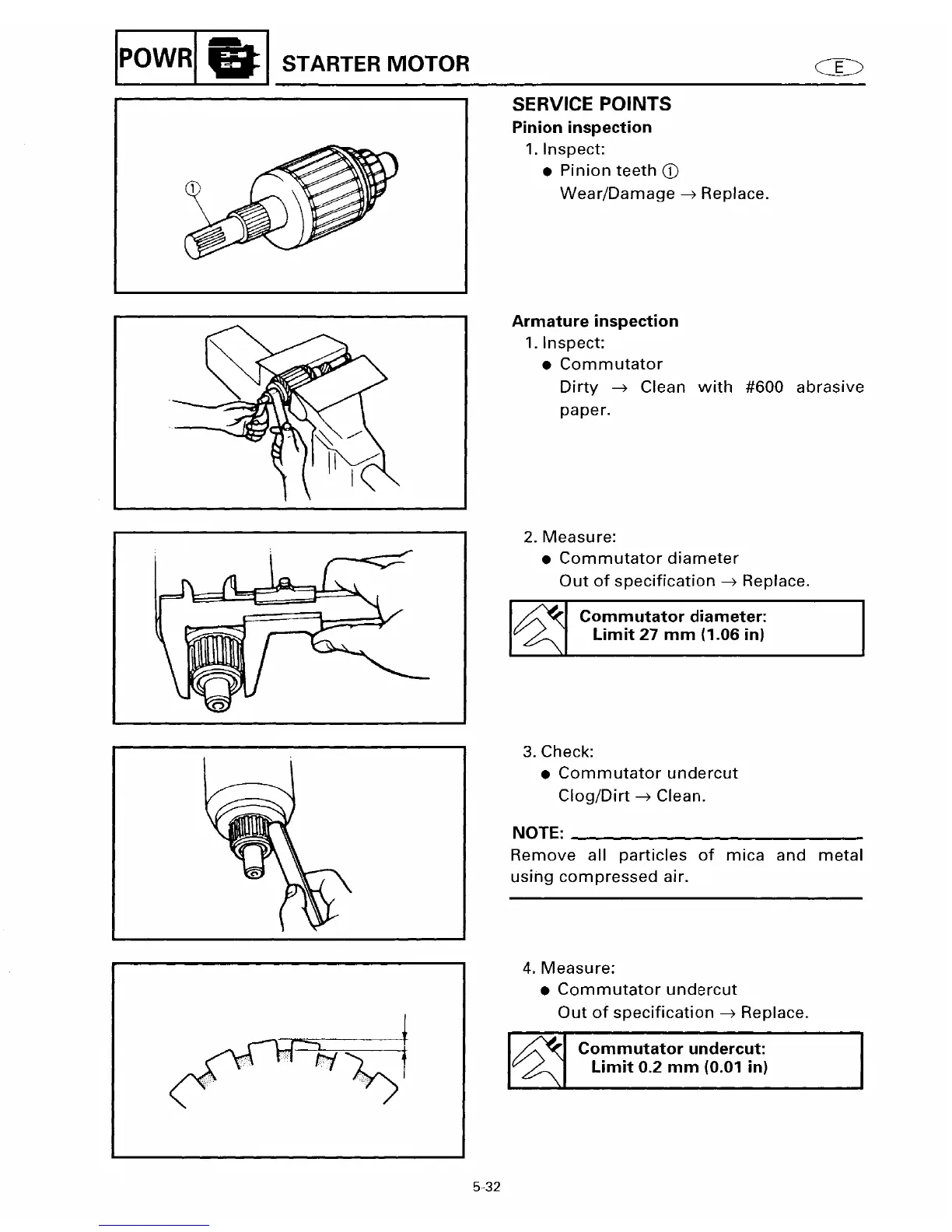 Yamaha GP760 - Pinion;Armature Inspection; Commutator Diameter;Undercut