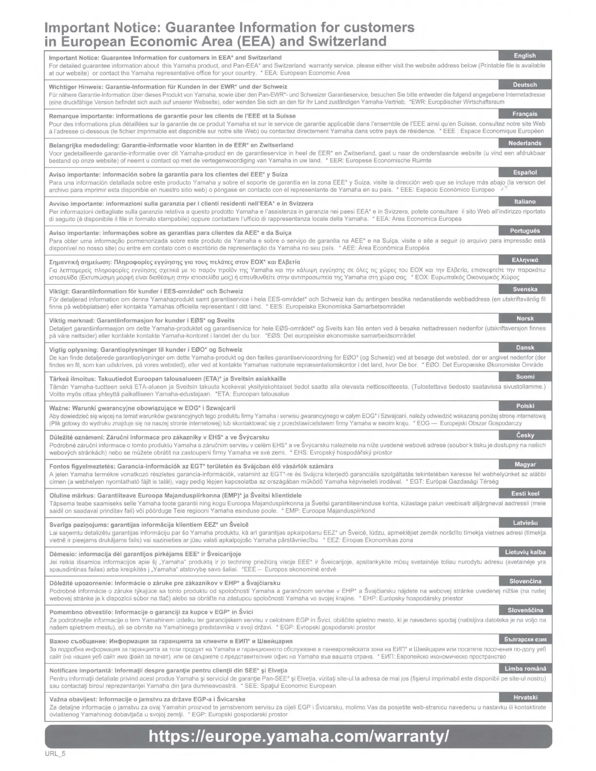 For detailed guarantee information about this Yamaha product, and Pan-EEA' and Switzerland warranty service, please either visit the website address below (Printable file is available