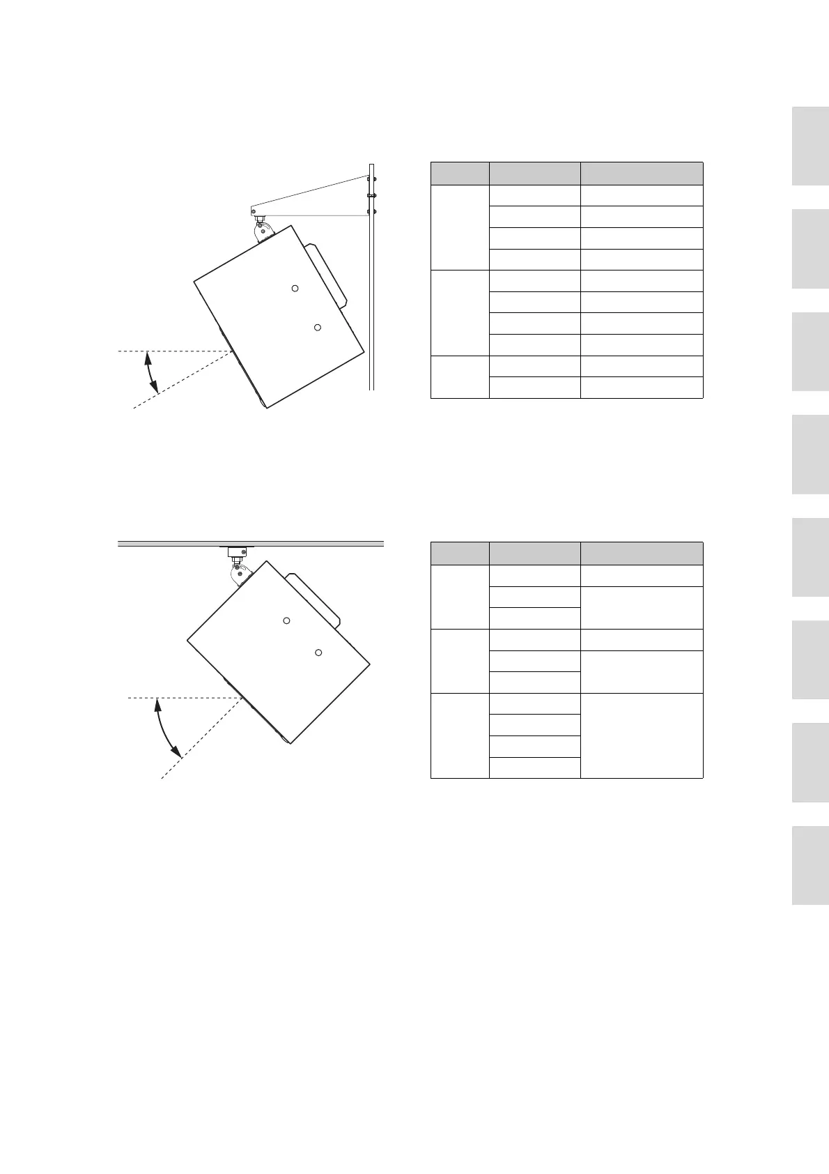 Yamaha HS8 - Mounting Tilt Angle Specifications; Wall and Ceiling Mount Tilt Angles