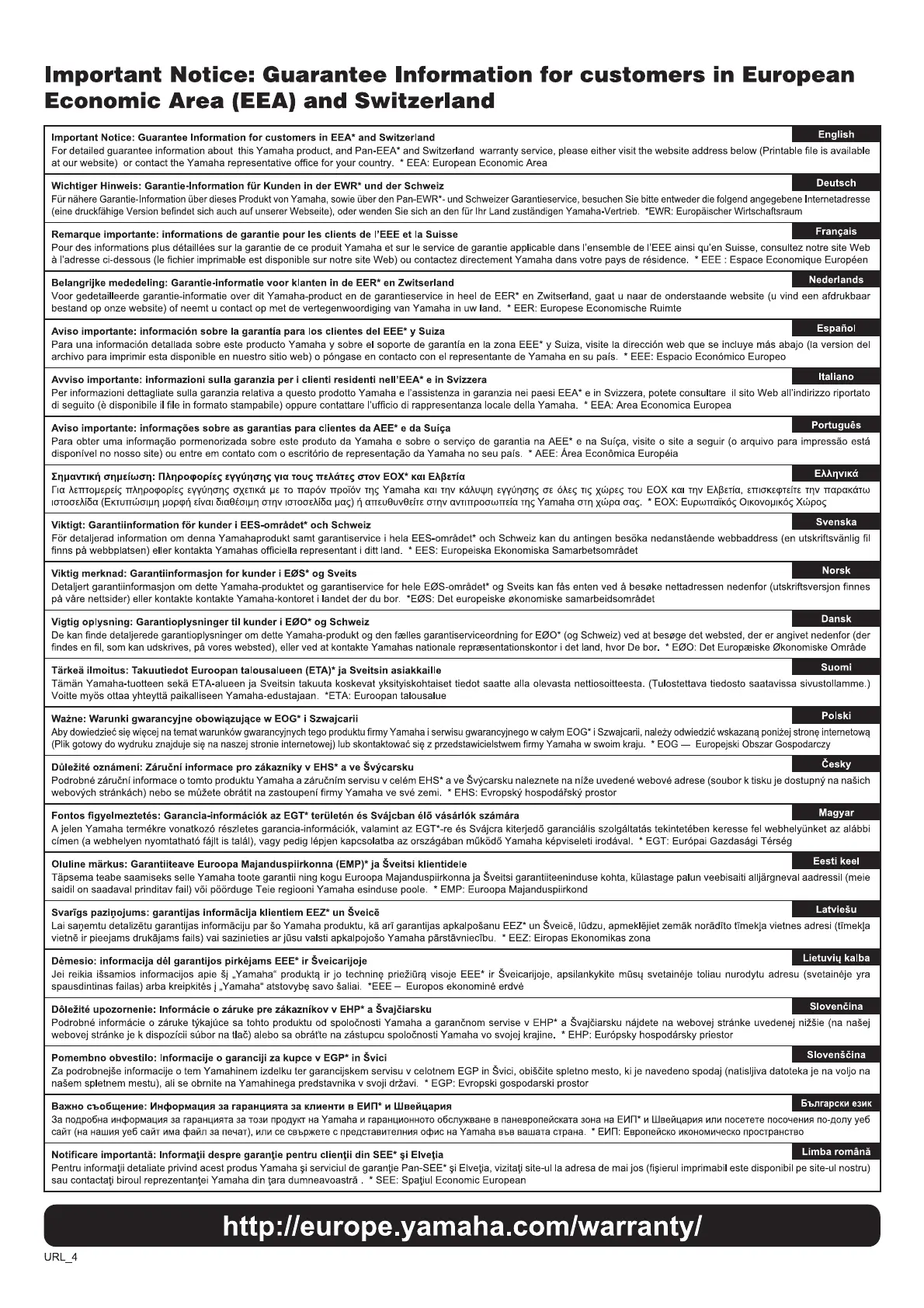 Yamaha HS8 - International Warranty Information; Guarantee Details for EEA and Switzerland