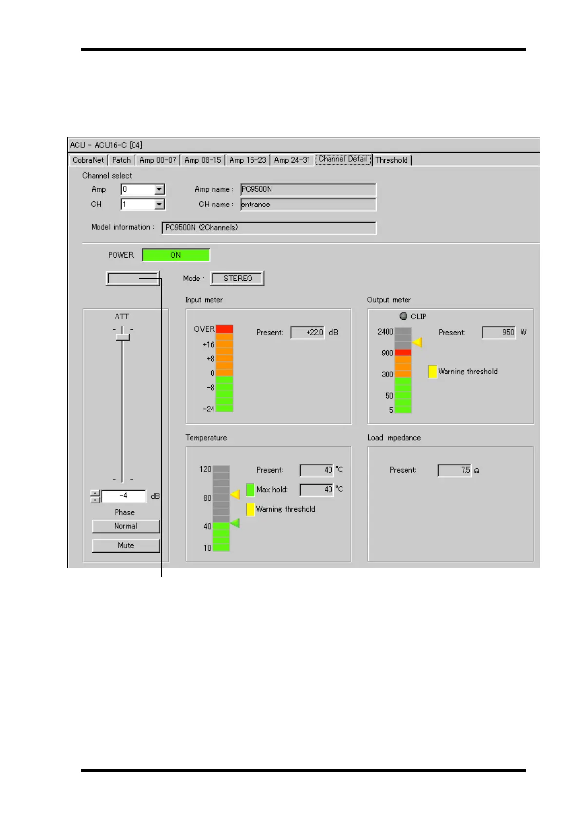 to view. Use the Amp pop-up menu to select a power amplifier. Use the CH pop-up menu