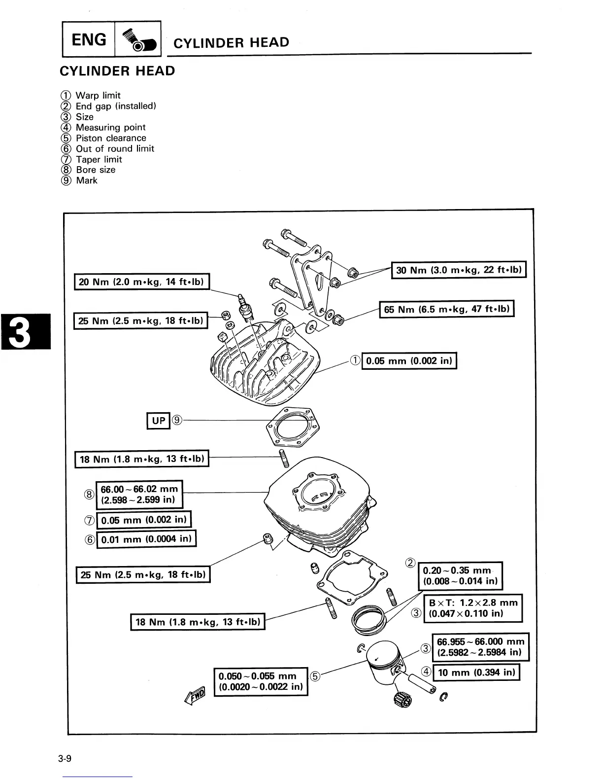 Yamaha IT200S - Cylinder Head View and Parts Identification