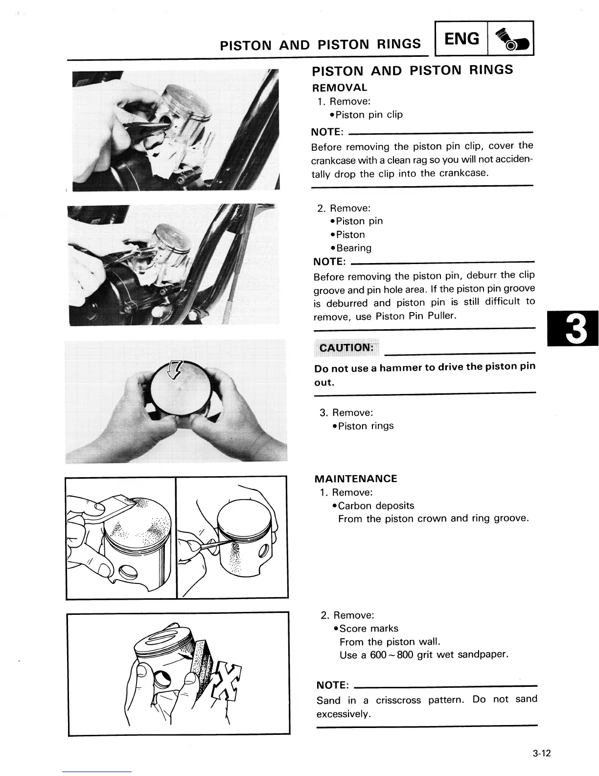 Yamaha IT200S - Piston and Piston Rings Removal; Piston Maintenance