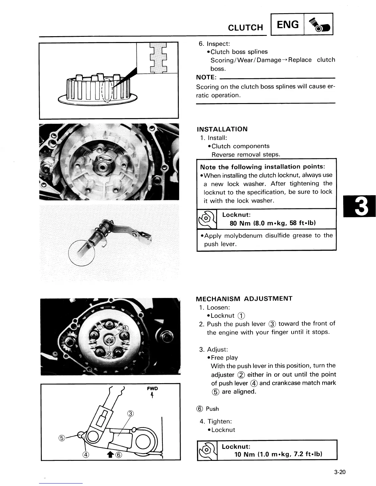 Yamaha IT200S - Clutch Installation; Clutch Mechanism Adjustment