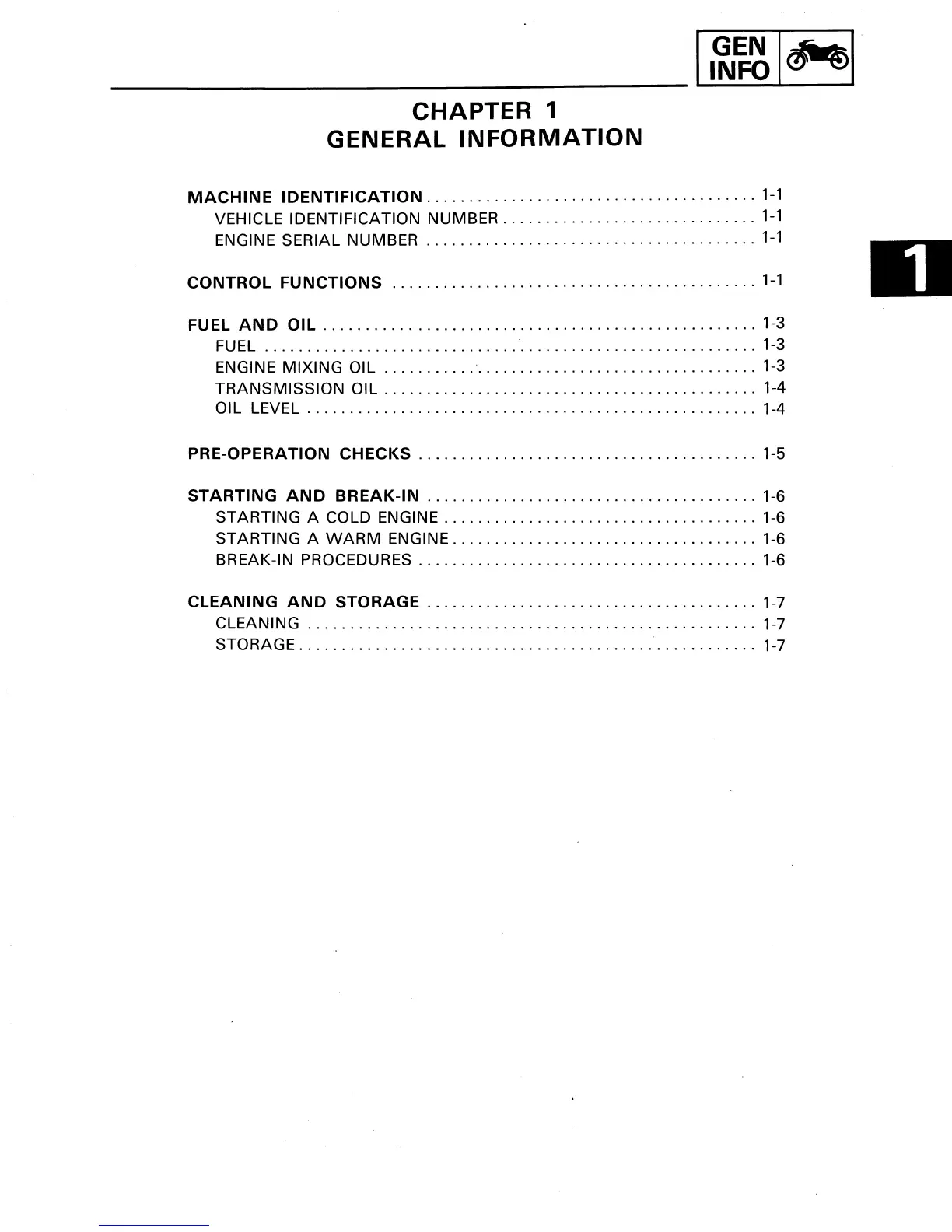 Yamaha IT200S - Chapter 1 General Information; Fuel and Oil Information; Pre-Operation Checks; Starting and Break-in Procedures