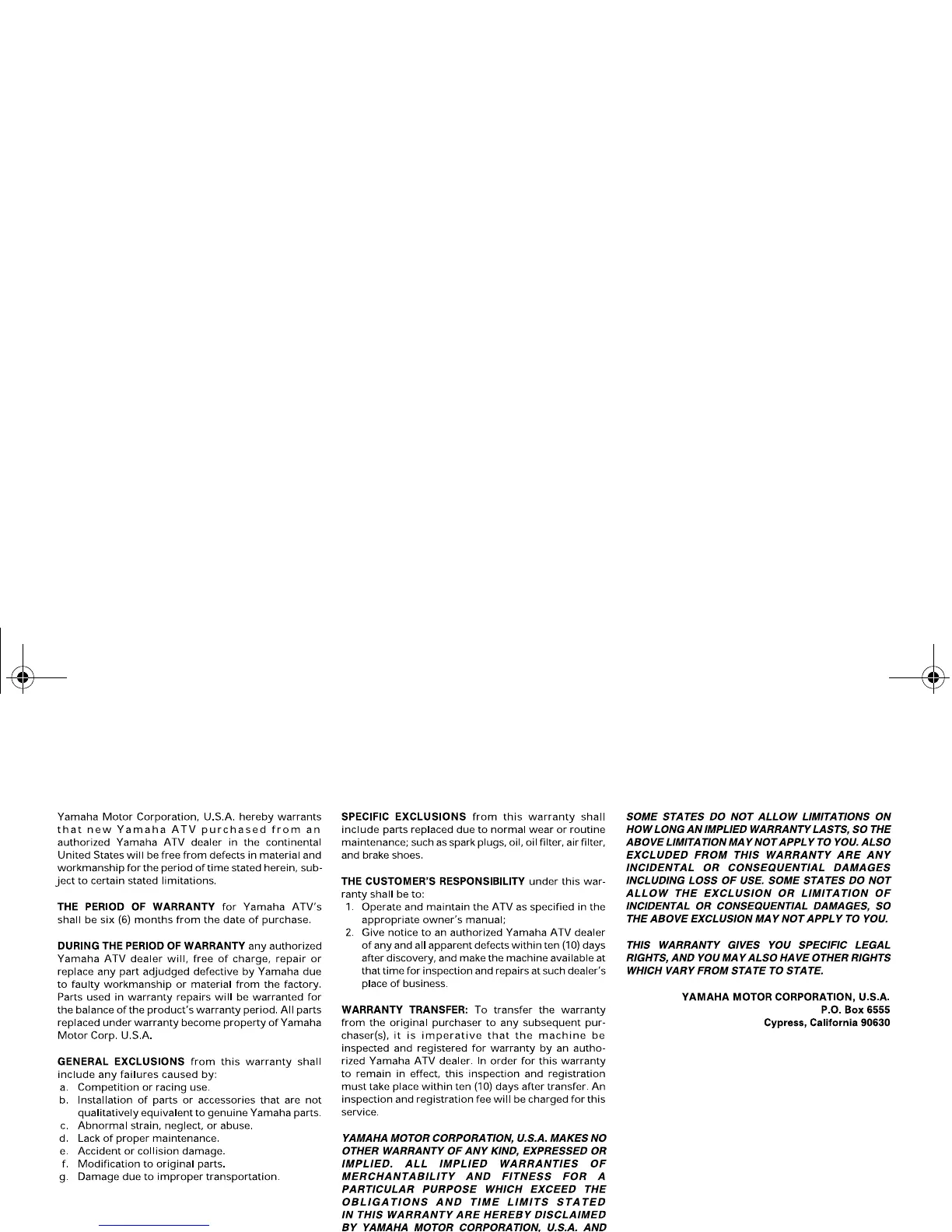 Yamaha KODIAK Ultramatic - ATV LIMITED WARRANTY; WARRANTY TERMS AND CONDITIONS