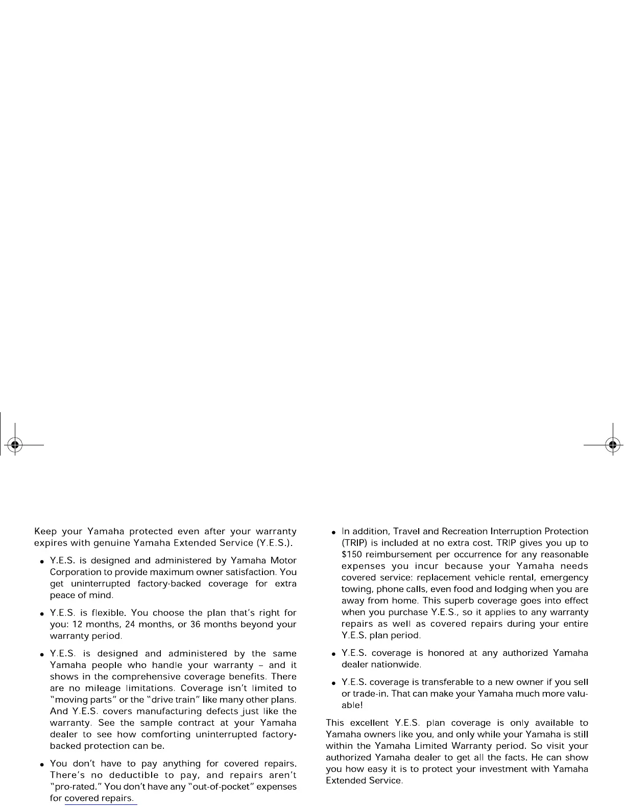 Yamaha KODIAK Ultramatic - YAMAHA EXTENDED SERVICE (Y.E.S.); BENEFITS OF EXTENDED SERVICE PLAN