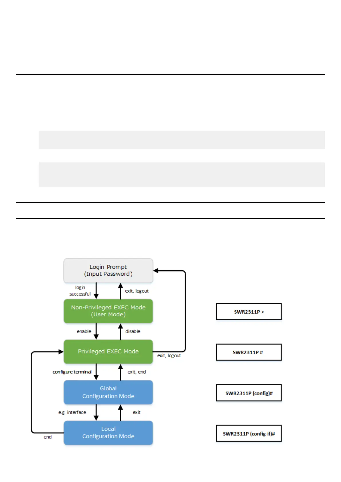 commands that can be entered in each mode are different. By noting the prompt, the user can see which mode they are currently