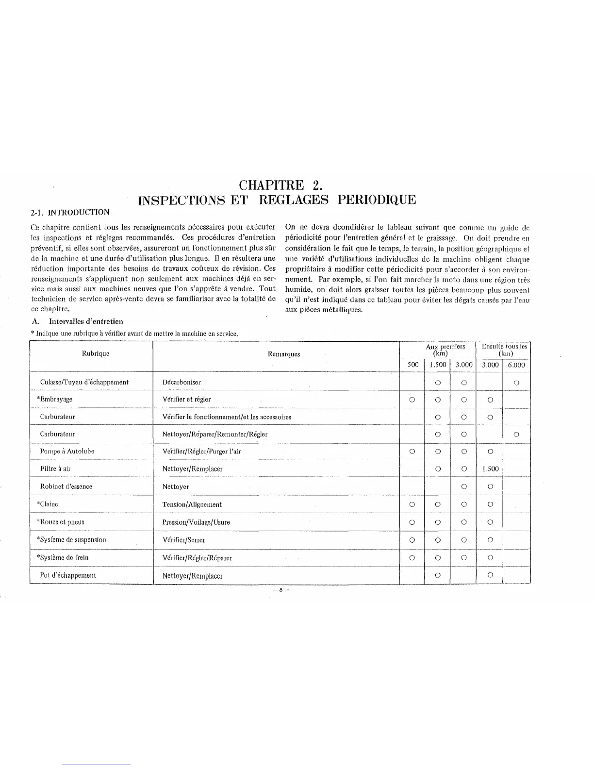 les inspections et reglages recommandes. Ces procedures d'entretien