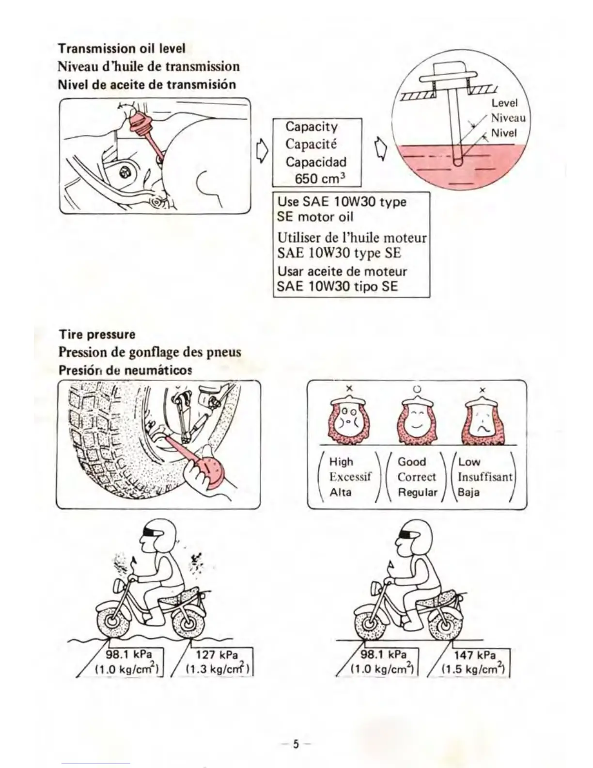 Yamaha LB50-2AE Chappy - Transmission Oil and Tire Pressure