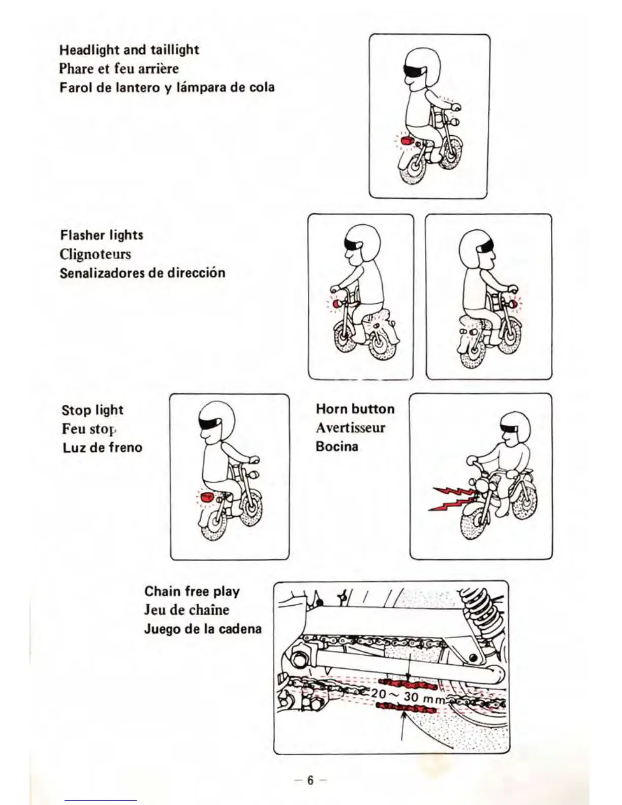 Yamaha LB50-2AE Chappy - Hadlight and Taillight; Flasher Lights; Stop Light; Horn Button;Chain Free Play